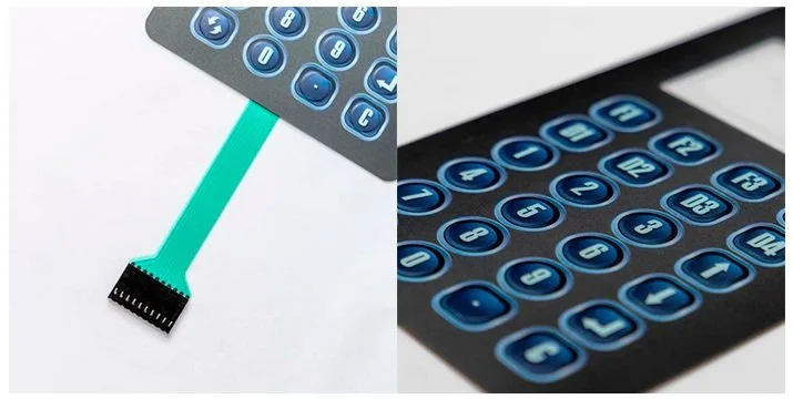 The topmost layer of the membrane switch is typically called the graphic overlay, which is produced by printing on the second surface of clear polyester or polycarbonate film. The switch's circuitry is formed by screen printing conductive silver ink onto the layers.